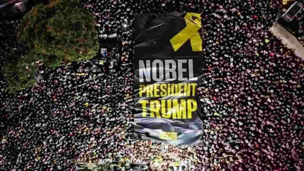 கூட்டத்தினரிடையே உரையாற்றிய அமெரிக்க விசேட தூதுவர் ஸ்டீவ் விட்கொஃப், பணயக்கைதிகள் “வீட்டுக்குத் திரும்பி வருகிறார்கள்” என்று தெரிவித்தார்.