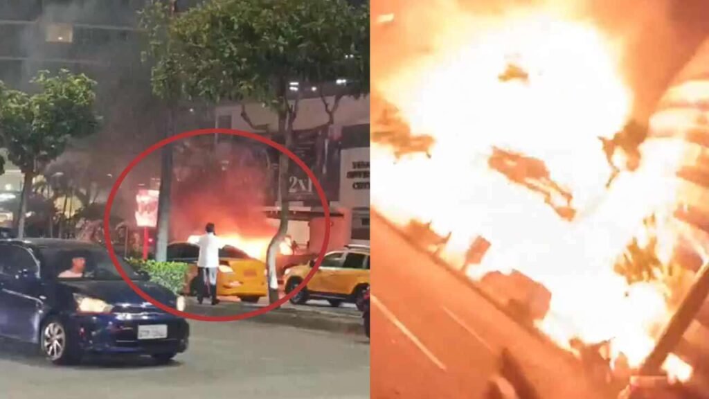 முதற்கட்ட தகவல்களின்படி, நேற்று (14) இரவு பல்பொருள் அங்காடிக்கு அருகே நிறுத்தப்பட்டிருந்த கார் ஒன்று தீப்பிடித்து எரிந்துக் கொண்டிருந்த போது திடீரென பெரும் சத்தத்துடன் வெடித்துள்ளது.