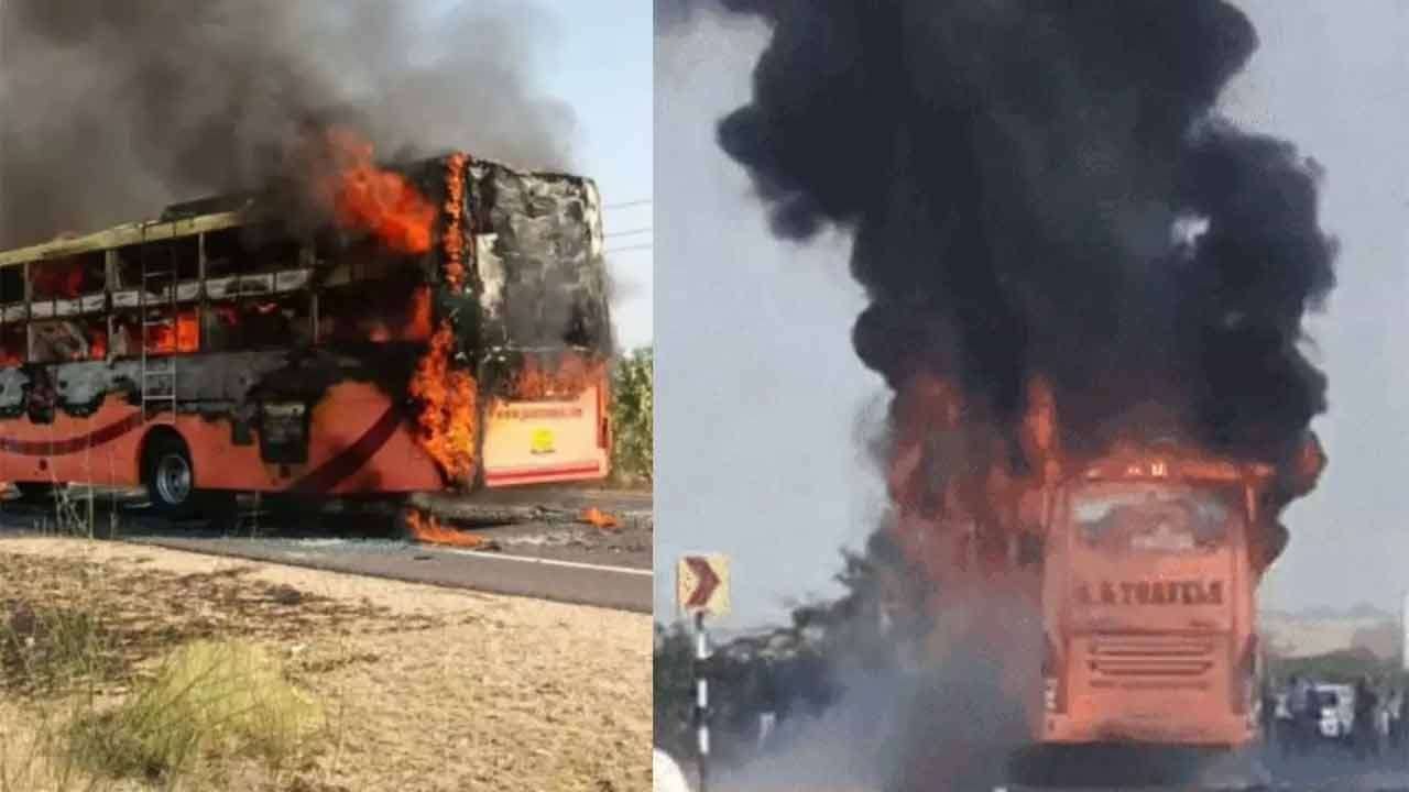 நேற்று மாலை, ஜெய்சால்மரில் இருந்து பயணிகளுடன் புறப்பட்ட தனியார் பேருந்து சுமார் 20 கிலோமீற்றர் தொலைவில் ஜோத்பூர் நெடுஞ்சாலையில் உள்ள தையத் கிராமம் அருகே வந்தவுடன் திடீரென பின்புறத்தில் தீப்பிடித்தது.