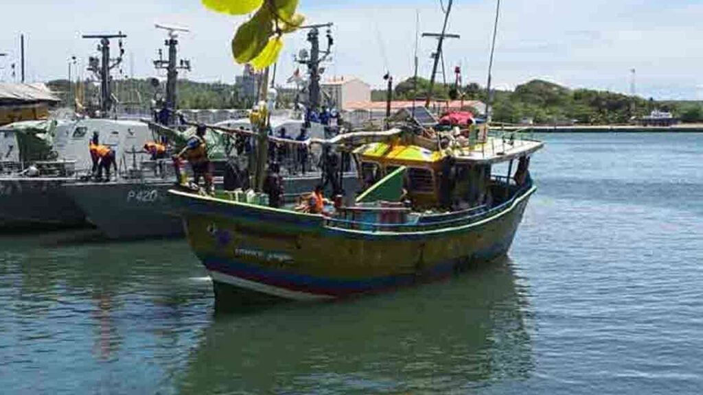 அந்த மீன்பிடி படகில் இருந்த ஐந்து பேரை கடற்படையினர் கைது செய்துள்ளனர்.