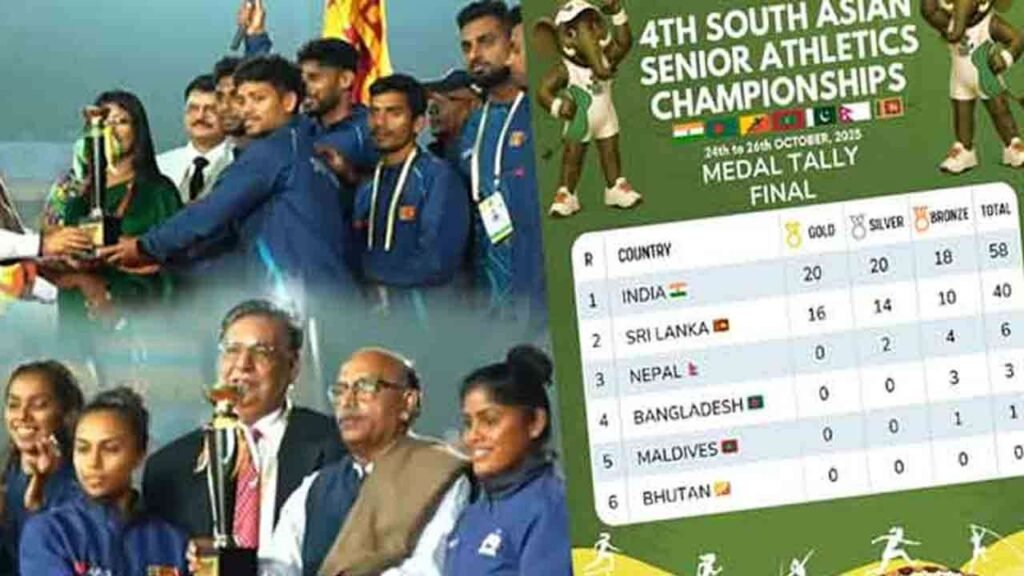 பல போட்டிகளில் இந்தியாவுடன் போட்டியிட்ட இலங்கை, பதக்கப் பட்டியலில் 4 தங்கப் பதக்கங்கள் வித்தியாசத்தில் முதலாம் இடத்தை இழந்தது.