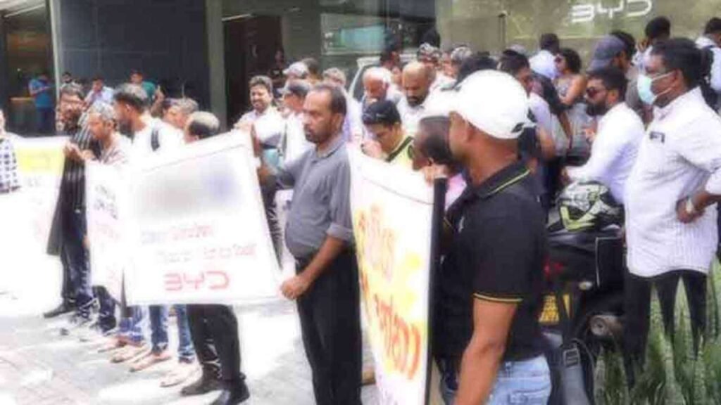 கொழும்பில் அமைந்துள்ள BYD வாகன விற்பனை நிலையம் முன்பாக இந்த ஆர்ப்பாட்டம் நடைபெற்றது.