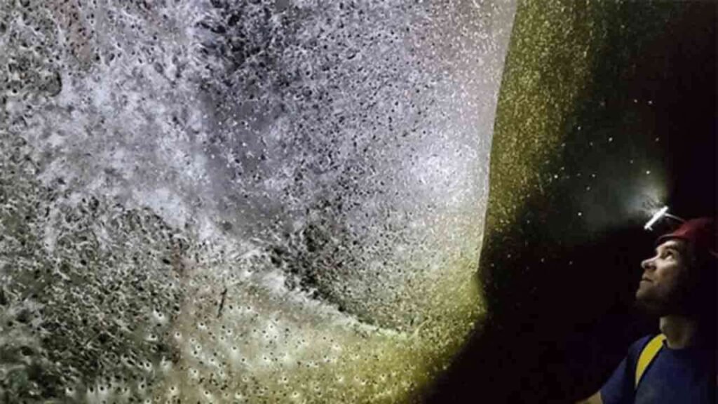 கிரீஸ் மற்றும் அல்பேனியா எல்லைகளில் அமைந்துள்ள சல்ஃபர் குகைக்குள் இதுவரை ஆவணப்படுத்தப்படாத ஒரு பிரமாண்டமான கூட்டுச் சிலந்தி வலை கண்டுபிடிக்கப்பட்டுள்ளது. இந்தக் கண்டுபிடிப்பு, உயிரினங்களின் கூட்டு வாழ்க்கை முறை மற்றும் தனித்துவமான சூழலியல் அமைப்புகள் குறித்த ஆய்வாளர்களிடையே பெரும் வியப்பை ஏற்படுத்தியுள்ளது. கண்டுபிடிக்கப்பட்ட இந்தச் சிலந்தி வலை சுமார் 106 சதுர மீற்றர் (1,140 சதுர அடி) பரப்பளவுக்கு விரிந்துள்ளது. இது உலகின் மிகப்பெரிய கூட்டுச் சிலந்தி வலை என வர்ணிக்கப்படுகிறது. இந்த வலை ஒற்றைச் சிலந்தியால் பின்னப்பட்டது அல்ல. இந்த அமைப்புக்குள் சுமார் 1,11,000 சிலந்திகள் (இலட்சத்திற்கும் அதிகமானவை) கூட்டாக வாழ்கின்றன. பல்லாயிரக்கணக்கான சிலந்திகள் ஒன்றிணைந்து வாழும் இந்த அமைப்பு, ஆய்வாளர்களால் ஒரு சிலந்தி ‘பெருநகரம்’ என்று வர்ணிக்கப்படுகிறது. இந்த கூட்டு வலை அமைப்பு உருவானதற்குக் குகைக்குள்ளே நிலவும் தனித்துவமான சூழலியல் அமைப்பு முக்கியக் காரணமாகும். இந்தப் பிரமாண்ட வலை, குகைக்குள்ளே உள்ள விசேட நிலைமைகள் காரணமாக, பல்லாயிரக்கணக்கான சிலந்திகள் ஒன்றிணைந்து உணவுத் தேடல் மற்றும் பாதுகாப்பிற்காகச் செயல்படும் ஒரு கூட்டுப் பிணைப்பு அமைப்பாகச் செயல்படுகிறது.
