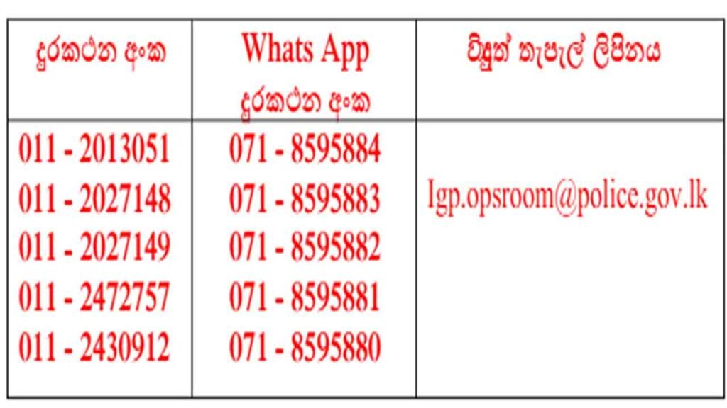 இந்த அவசர நிலைமை குறித்து முறையான ஒருங்கிணைப்பைப் பேணுவதற்கும், தேவையான நிவாரணங்களை வழங்குவதற்கும், பொலிஸ் மா அதிபரின் மேற்பார்வையின் கீழ் பொலிஸ் தலைமையகத்தில் பொலிஸ் மா அதிபரின் விசேட நடவடிக்கை மையம் ஒன்று நிறுவப்பட்டுள்ளது.