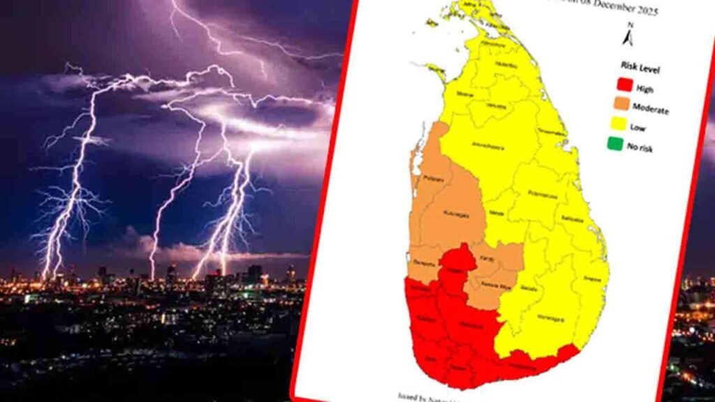 சப்ரகமுவ மற்றும் தென் மாகாணங்களிலும், கொழும்பு மற்றும் களுத்துறை மாவட்டங்களின் சில இடங்களிலும் இடியுடன் கூடிய மழையுடன் பலத்த மின்னல் ஏற்படுவதற்கான அதிக சாத்தியக்கூறுகள் காணப்படுவதாக அந்த திணைக்களம் குறிப்பிட்டுள்ளது.