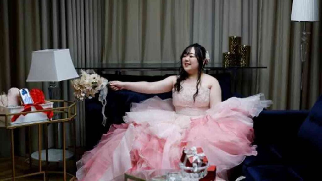 அங்கு ஒரு டிஜிட்டல் உருவத்துடன் அவர் திருமண உறுதிமொழிகளைப் பரிமாறிக் கொண்டதாக வெளிநாட்டுச் செய்திகள் தெரிவிக்கின்றன.