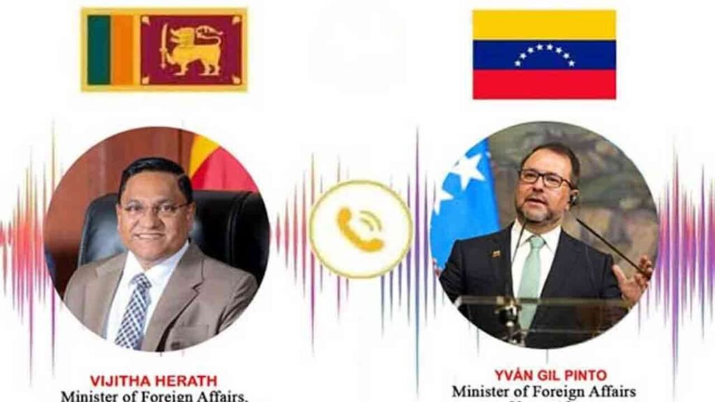இலங்கையின் வெளிவிவகார, வெளிநாட்டு வேலைவாய்ப்பு மற்றும் சுற்றுலாத்துறை அமைச்சர் விஜித ஹேரத், வெனிசுலாவின் வெளிவிவகார அமைச்சர் இவான் கில் பின்டோவுடன் தொலைபேசி ஊடாக கலந்துரையாடலை நடத்தியுள்ளார்.