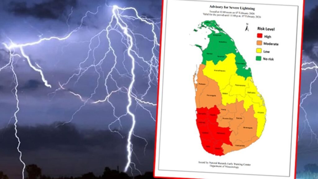 வளிமண்டலவியல் திணைக்களத்தின் இயற்கை அனர்த்தம் தொடர்பான முன்னெச்சரிக்கை மையம், இன்று (07) நண்பகல் 12.00 மணியளவில் கடும் மின்னல் தாக்கம் தொடர்பான ‘செம்மஞ்சள்’ நிற எச்சரிக்கையை விடுத்துள்ளது.