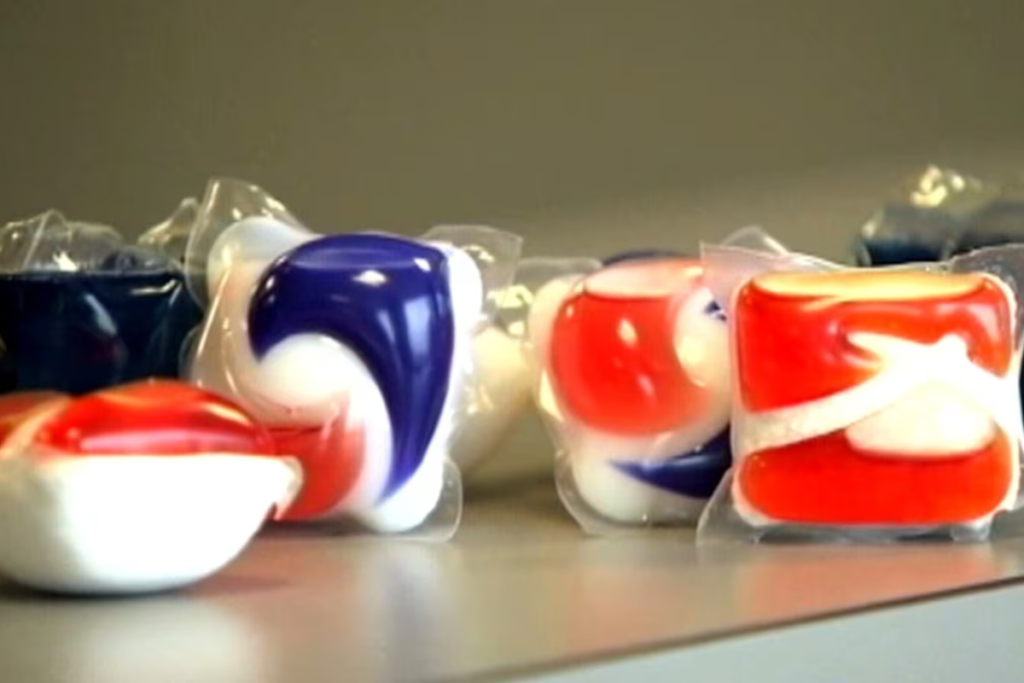 சலவை மற்றும் பாத்திரங்களைக் கழுவும் ‘பாட்கள்’ (Pods), இவை மிட்டாய்களைப் போலக் காட்சியளிப்பதால் சிறுவர்கள் அவற்றை மெல்லுகின்றனர்.