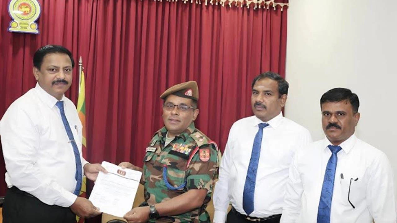 யாழ்ப்பாணம் அச்சுவேலி ஒட்டகப்புலம் 511 பிரிகேட்டின் கேணல் பி.எம்.சி. வன்னிநாயக்க, யாழ். மாவட்ட அரசாங்க அதிபர் மருதலிங்கம் பிரதீபனிடம் இந்த ஆவணங்களைக் கையளித்தார்.