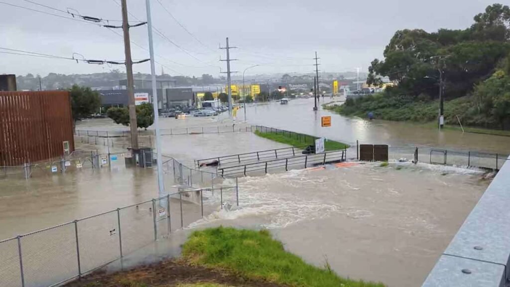 இதனால் வார்க்வோர்த் நகரில் உள்ள மவுராகி ஆற்றில் வெள்ளம் பெருக்கெடுத்து ஓடி வீடுகள், வீதிகள் மற்றும் குடியிருப்பு பகுதிகளுக்குள் வெள்ளம் புகுந்தது.