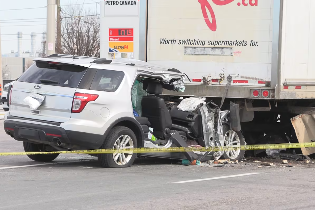 ஏர்போர்ட் சாலையில் தெற்கு நோக்கிச் சென்றுகொண்டிருந்த சொகுசு கார் (SUV), வில்லியம்ஸ் பார்க்வேக்கு சற்று வடக்கே ஒரு சரக்கு லாரியின் பின்புறத்தில் மோதி விபத்துக்குள்ளானது.