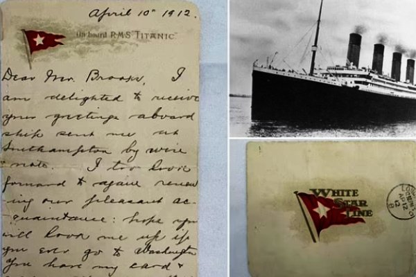கடலில் மூழ்கிய டைட்டானிக் கப்பல் மூழ்குவதற்கு சில நாட்களுக்கு முன்பாக, டைட்டானிக் பயணி ஒருவர் எழுதிய கடிதம் இங்கிலாந்தில் நடந்த ஏலத்தில் 400,000 அமெரிக்க டொலருக்கு விற்பனையாகியுள்ளது.