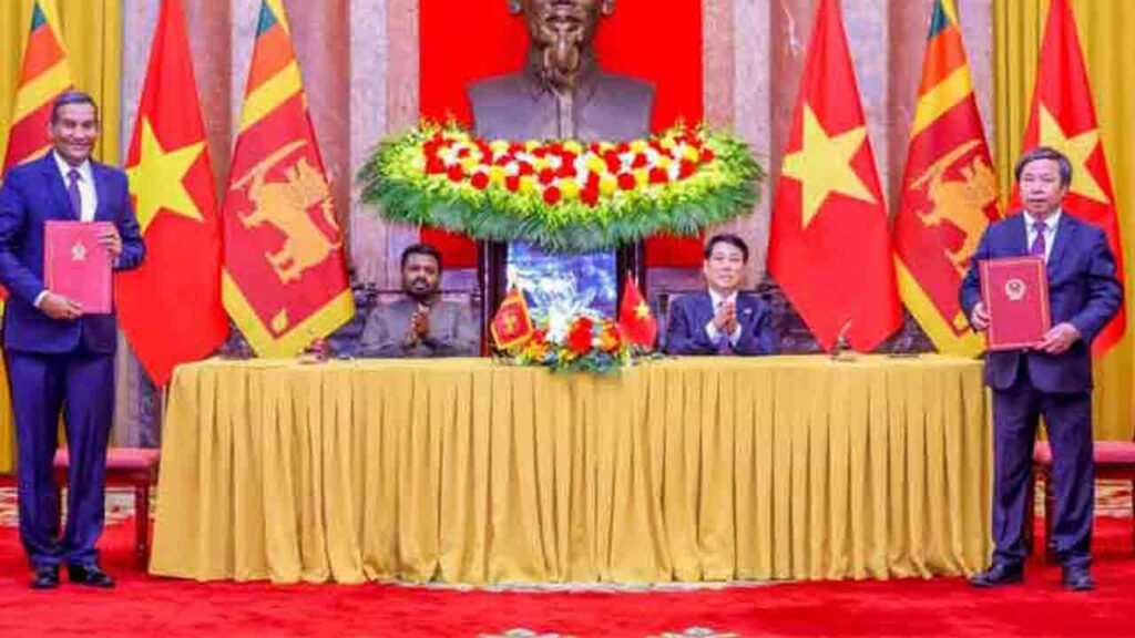 இலங்கை மற்றும் வியட்நாம் ஆகிய நாடுகளுக்கு இடையே பல துறைகள் தொடர்பான நான்கு புரிந்துணர்வு ஒப்பந்தங்கள் மற்றும் ஒரு உடன்பாட்டு ஒப்பந்தத்தில் ஜனாதிபதி அநுர குமார திசாநாயக்க மற்றும் வியட்நாம் ஜனாதிபதி லுவோங் குவோங் ஆகியோர் முன்னிலையில் கையெழுத்திடப்பட்டது.