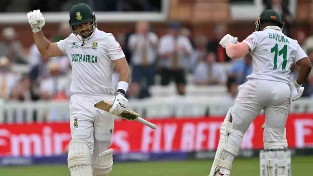 உலக டெஸ்ட் சாம்பியன்ஷிப் இறுதிப்போட்டி லண்டன் லார்ட்ஸ் மைதானத்தில் நடைபெற்று வருகிறது. நாணய சுழற்சியில் வென்ற தென்ஆப்பிரிக்கா பந்து வீச்சை தேர்வு செய்தது.