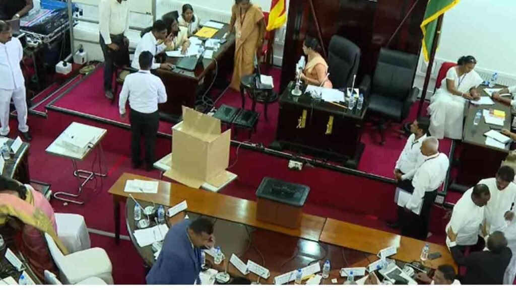 இது தொடர்பில் முன்வைக்கப்பட்ட முன்மொழிவு ஒருமனதாக ஏற்றுக்கொள்ளப்பட்டதைத் தொடர்ந்து தற்போது இரகசிய வாக்கெடுப்பு இடம்பெற்று வருகிறது.