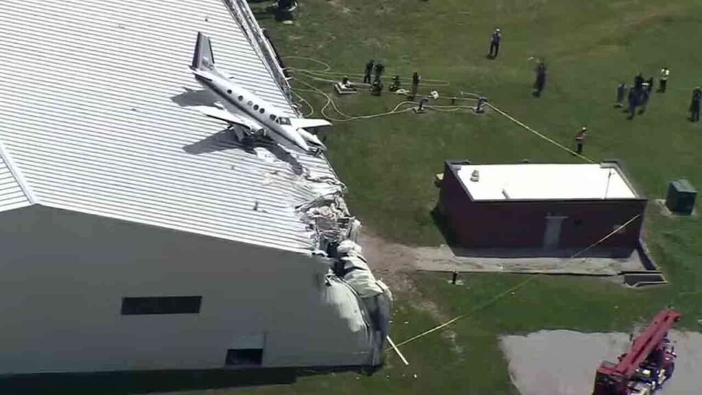அமெரிக்காவின் கன்சாஸ் (Kansas) மாகாணத்தில் சிறிய ரக விமானம் ஒன்று மேற்கூரையில் விழுந்து விபத்துக்குள்ளானது.