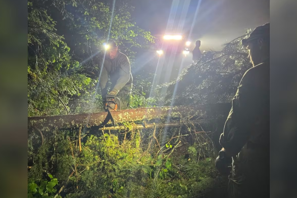 பூங்காவின் தனிமைப்படுத்தப்பட்ட பகுதியில் கம்பிங் சென்றிருந்த ஒரு தாய் மற்றும் அவரது 13 வயது மகனை, கடும் இடியுடன் கூடிய புயலுக்குப் பிறகு மீட்புக் குழுவினர் காப்பாற்றினர்.