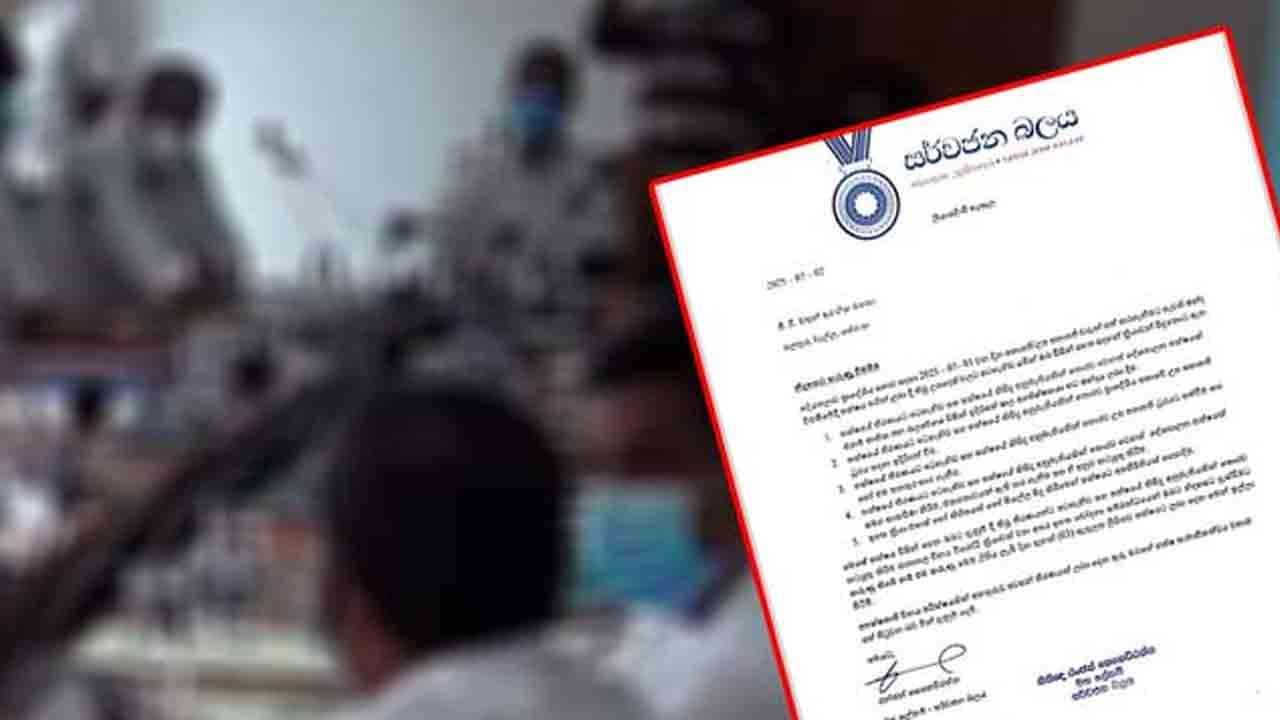 சர்வஜன அதிகாரத்தின் பொதுச் செயலாளர் ரஞ்சன் செனவிரத்னவின் கையொப்பத்துடன் வெளியிடப்பட்ட கடிதத்தில் இது குறித்து அறிவிக்கப்பட்டுள்ளது.