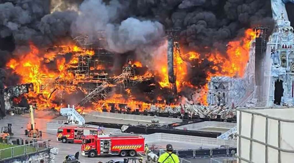 தீ விபத்தில் யாருக்கும் காயம் ஏற்படவில்லை என்றும், இதனால் முக்கிய நிகழ்ச்சிப் பகுதி சேதமடைந்ததாகவும் அதிகாரிகள் உறுதிப்படுத்தியுள்ளனர்.