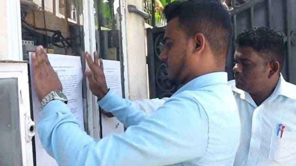 நீதிமன்றத்தில் முன்னாள் அமைச்சர் ராஜித சேனாரத்னவை ஆஜராகுமாறு தெரிவித்தே குறித்த அறிவித்தல் ஒட்டப்பட்டுள்ளது.